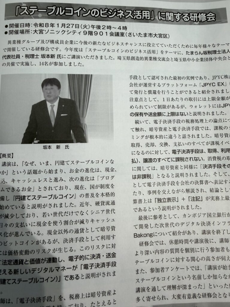 埼玉県中小企業団体中央会における弊社代表の登壇の様子が広報誌に掲載されました。
